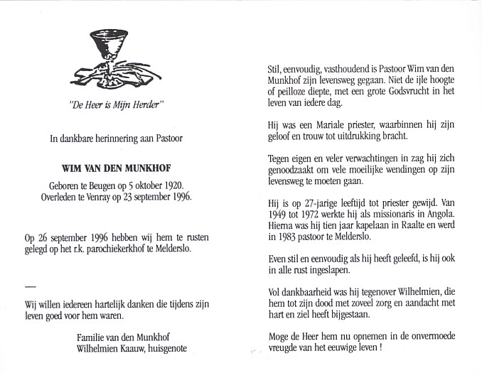 | Aantekening | Pastoor Melderslo (1983-1996) |
