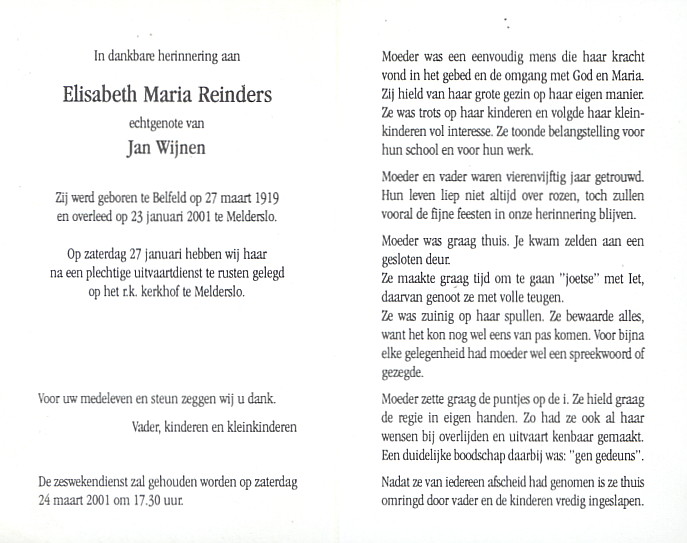 | Overledene | Reinders, Elisabeth Maria | |