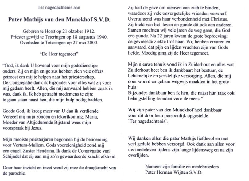 | Aantekening | Pater v/d Munckhof, S.V.D. |