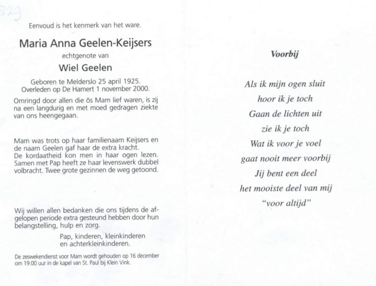 | Overledene | Keijsers, Maria Anna | |