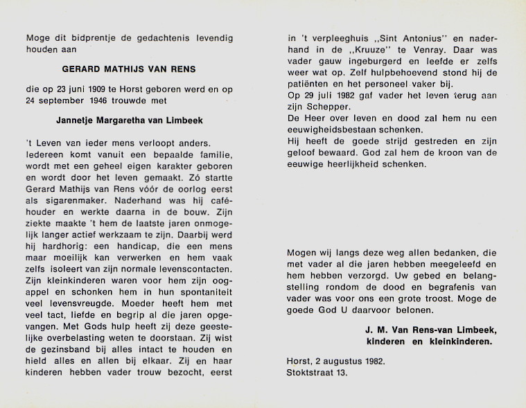 | Echtgenoot | Limbeek, Jannetje M. van |