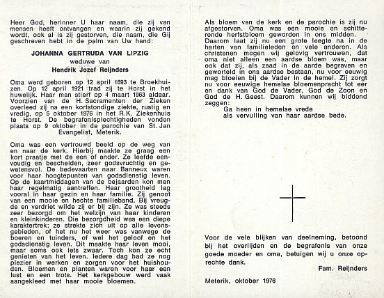 | Echtgenoot | Reijnders, Hendrik Jozef |