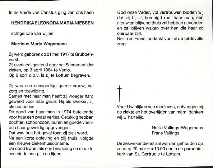 | Overledene | Niessen, Hendrika Eleonora M. | |