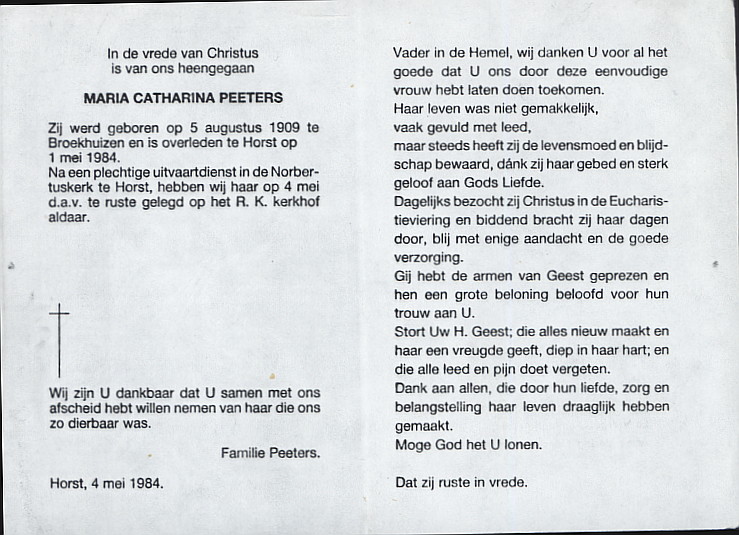 | Overledene | Peeters, Maria Catharina | |
