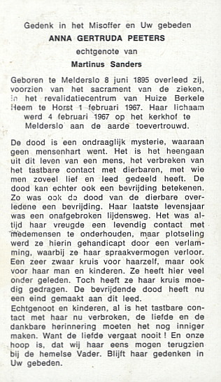 | Overledene | Peeters, Anna Gertruda | |
