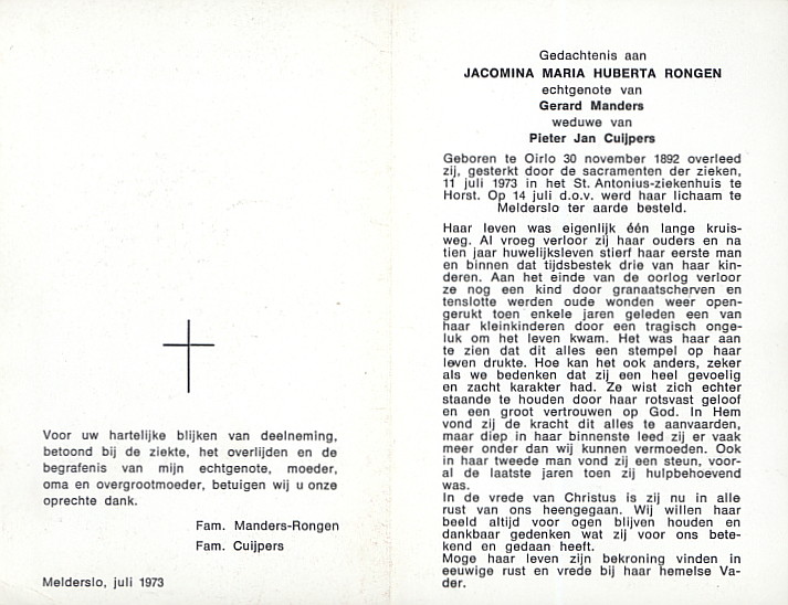 | Overledene | Rongen, Jacomina Maria Huberta | |