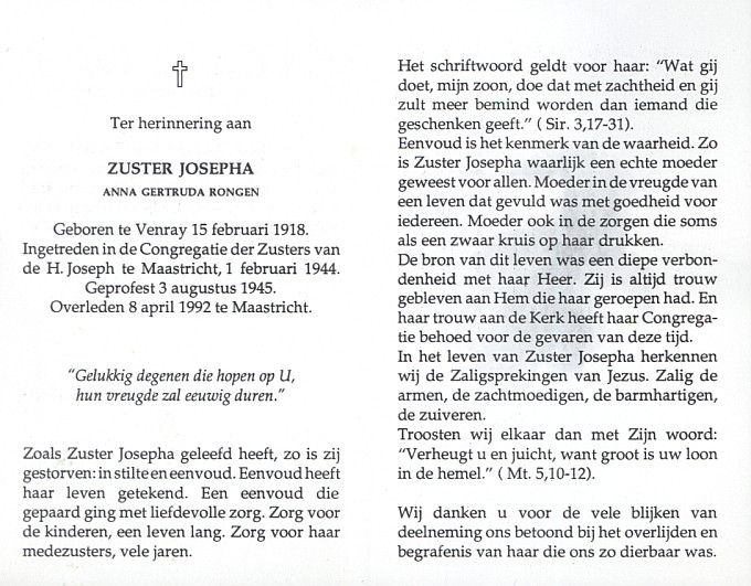 | Aantekening | Zuster Josepha |