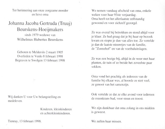| Echtgenoot | Beurskens, Wilhelmus Hubertus |
