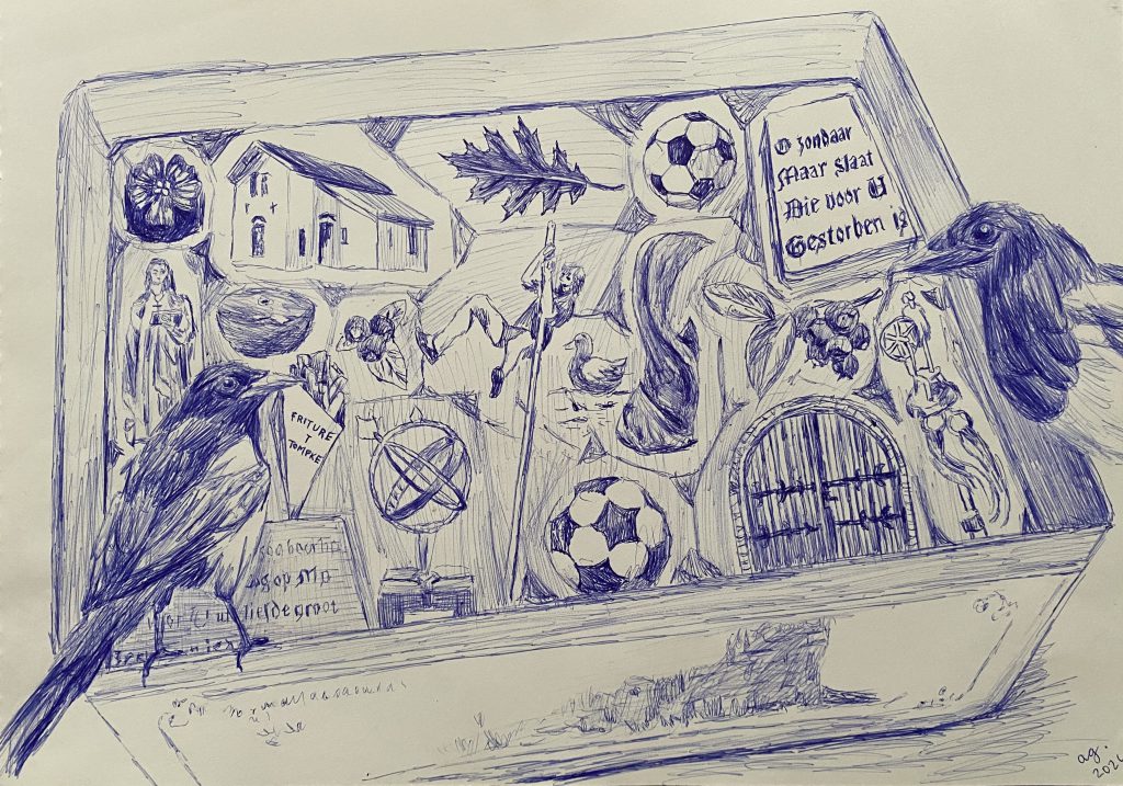 In de nieuwsbrief ‘Wist u dat … drieluik Melderslo 2.0.24‘ (12-2024) lieten wij u het gesloten koekblik van Melderslo zien gemaakt door Agata Siwek. Het drieluik 2.0.24. De eerste pentekening is het gesloten koekblik: